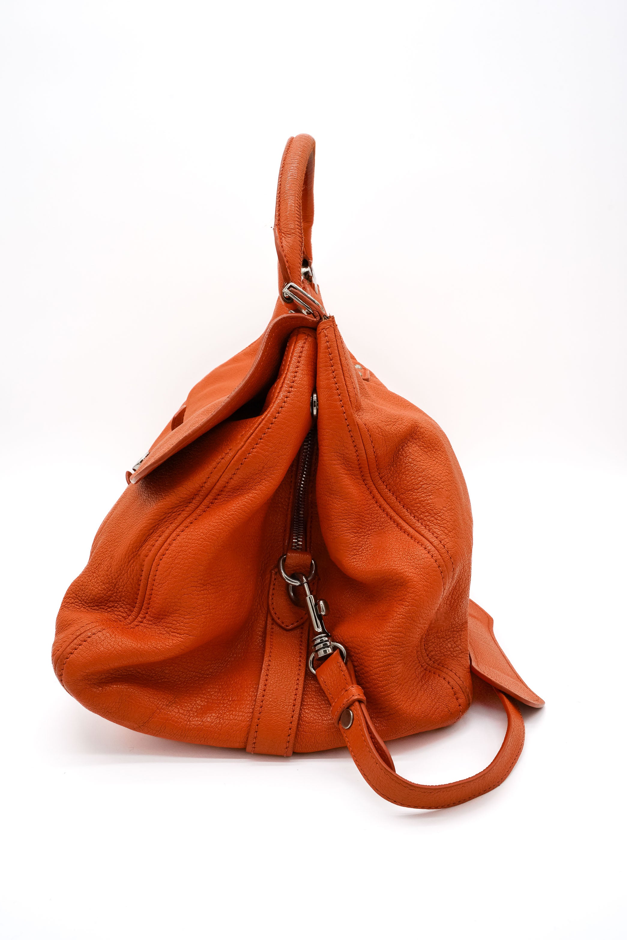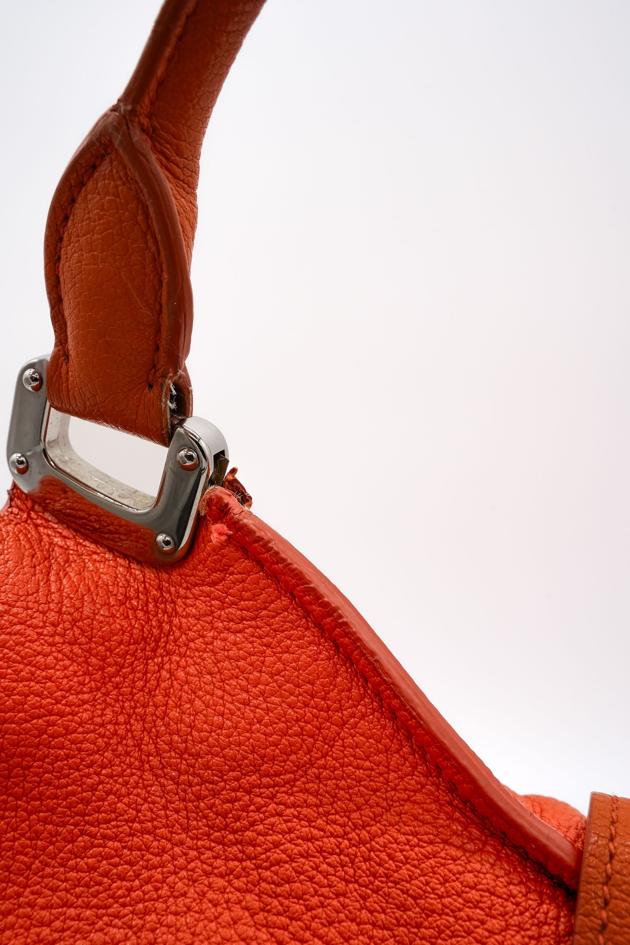 - Orangefarbenes, genarbtes Leder